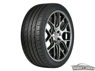 Протекторный рисунок выполнен в направленном симметричном дизайне с V-образным расположением дренажных канавок. Они имеют увеличенные размеры и численность, за счет чего даже на большой скорости риск возникновения гидропланирования минимален. Протекторные блоки располагаются таким образом, что в пятне контакта образуются удлиненные поперечные кромки, которые позволяют шине интенсивно ускоряться и замедляться на мокром покрытии. Непрерывное продольное ребро по центру и жесткие плечевые зоны обеспечивают курсовую устойчивость и точность в управлении.